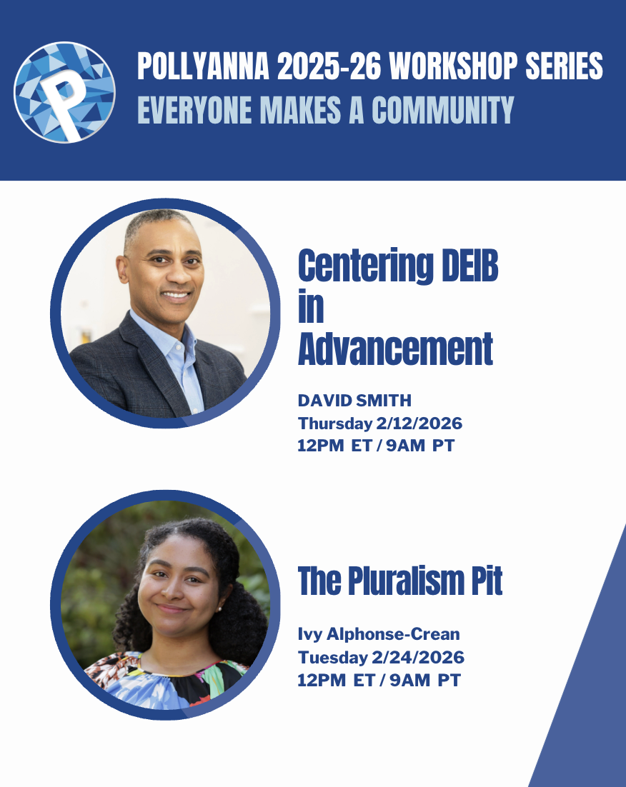 | | | | Dear Friend, Last month, we gathered for Pollyanna’s first-ever virtual National Conference. While we had hoped to be together in Minneapolis, the realities on the ground made that impossible. Choosing to go virtual was not easy, but it was the right decision. We stand with the Minneapolis community, and we are deeply grateful for the grace and flexibility shown by our schools, facilitators, sponsors, and speakers. What unfolded over those three days exceeded our hopes. The learning was rich, the conversations honest, and the sense of connection real. Even across screens, we showed what it looks like to keep showing up for one another and for Building Stronger and Kinder Communities. Click here to view our PNC 2026 Newsletter wrap up and stay tuned for our PNC 2027 announcement. That spirit of connection continues with the launch of Pollyanna Circles, our new membership community designed to deepen engagement, extend learning, and support schools year-round. And, as always, we are reminded that community is also personal. This month, we are smiling a little wider as we welcome new Pollyanna family members (see below) and celebrate the moments that bring joy alongside the work. Thank you for being part of this growing, caring community. We are so glad you are here. | |  | | | | | Leadership Team Convening Launches in 2026 We’re excited to invite you to Resilient Leadership in a Time of Change, Crisis, and Conflict, launching in New York City this April – created by Pollyanna and hosted by The Hewitt School and St. Luke’s School for NY schools. Designed for senior leadership teams, this two-part convening strengthens alignment between mission, priorities, and decisions. Guided by Jason Craige Harris, we’ll engage in role-based discussions and intentional team planning, leaving with tangible takeaways, actionable insights, and a clear roadmap for mission-aligned progress. Click here to learn more and register. | | | | Introducing Pollyanna's Circle Membership 2026-27 Year-Long Learning. Stronger Communities. One Annual Fee. Join the Pollyanna Circle and equip your entire school community with the programs, tools, and inspiration needed to Build Stronger and Kinder Communities all year long. Become a founding member and gain expanded access to the resources schools rely on most from Pollyanna. Click here for more information and to register. | | | | Teen Council's February Meetup: Exploring Identity Join Anthony Witte on Sunday, February 8, on Zoom as he leads a conversation on identity, belonging, and equity. Drawing on experience in independent school leadership, journalism, and arts administration, he provides insights on cultural competency and inclusive community-building. If you're 13-18 years old and would like to join a great group of students from across the country, fill in this form and we'll be in touch. | | | | | | David & Ivy Headline Our February Online Workshops Our workshops for the second half of the school year are filled with incredibly strong content and very much needed now. Please join us. On Thursday 2/12, David Smith will examine how advancement teams can align fundraising, alumni engagement, and events with DEIB goals. On Tuesday 2/24, Ali Michael will explore the shift from DEI to “pluralism” and why it may unintentionally uphold exclusion. | | | | | | | | | | | | | | | | The Art of Having Difficult Conversations Pictured here is Renita LiVosi, Katherine Delmar Burke School’s innovative Director of DEIB, alongside Pollyanna partners Anthony Witte and Jason Craige Harris. They recently spent time with faculty and staff exploring the art of having difficult conversations — approaching them in ways that build trust, preserve dignity, and strengthen community. We’re grateful for schools that invest so intentionally in courageous dialogue, relational leadership, and the well-being of the adults who shape young people’s lives. | | | | | | We've Added to Our Team We’re thrilled to welcome Veneka Chag as a Trustee and Derek Lipscomb as Project Coordinator to Pollyanna. Veneka brings deep expertise in philanthropy, governance, and relationship-building, while Derek offers years of experience in education, athletics, and community organizing. Together, their leadership and lived experience will strengthen our programs, partnerships, and collective efforts to Building Stronger and Kinder Communities. | | | | | | And a New Family Member On December 31, Akemi-Rose arrived a bit earlier than expected and has already filled many hearts. She is the beautiful daughter of Dayna Campbell, Pollyanna’s Chief of Staff, and her partner, Dennis Bonilla. Now one month old, Akemi-Rose is keeping her parents happily busy and very much on their toes. We are thrilled to welcome her to the Pollyanna family and send so much love to Dayna, Dennis, and Akemi-Rose. | | | | | | | | | | | | Strategenius Hosting Virtual Career Fair and Networking Event Join on Saturday, February 7, 2026, from 9:00-11:30AM PST for this premier virtual fair that connects independent schools committed to equity with a diverse, dynamic network of educators and leaders. Click here to sign up now! - Candidates can explore roles across teaching, administration, operations, advancement, admissions, and more, while receiving free resume feedback from TopResume.